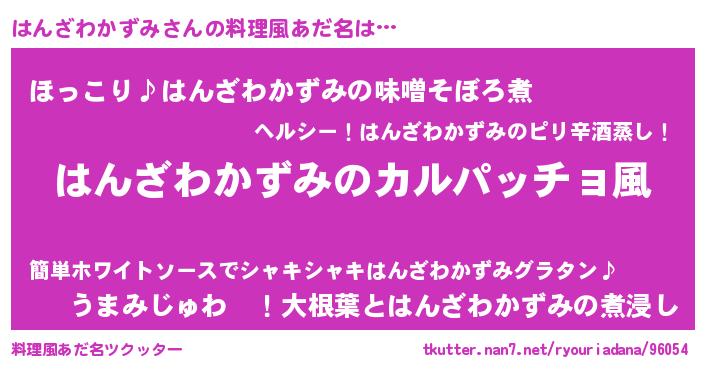 | 意味不明あだ名 | 『住所不定無職はんざわかずみ(56歳)』 |