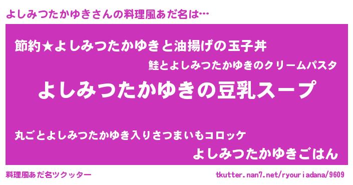 | ポケモン風あだ名 | 『ヒヨシミツタカユキ』『ヨシチュウ』 |
