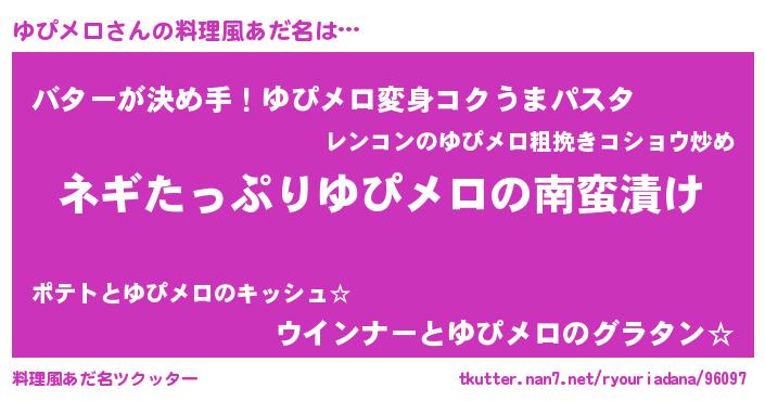 | ヒーロー風カッコイイあだ名 | 『スーパーユピメロ』『愛の使者ゆぴメロ』 |