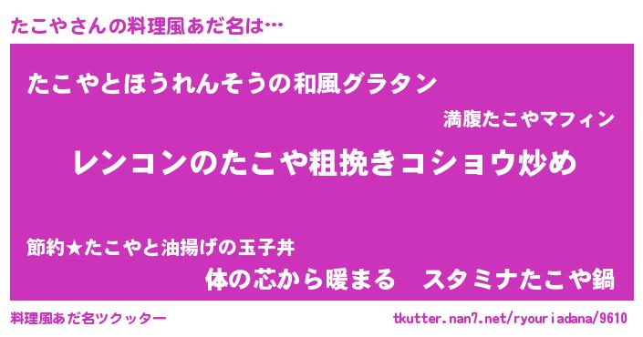 | 女子向けラノベタイトル風あだ名 | 『たこやなんてお断りですっ。』 |