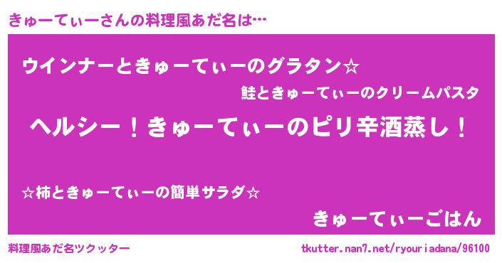 | 男性向けラノベタイトル風あだ名 | 『Re:きゅーてぃーから始める異世界生活』 |