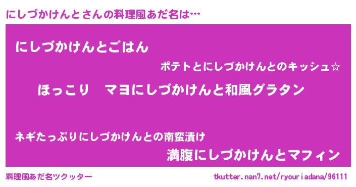 | 男性向けラノベタイトル風あだ名 | 『この素晴らしい世界ににしづかけんとを!』 |