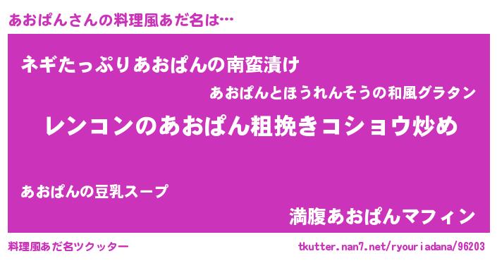| 欧米人風あだ名 | 『ケンブリッジあおぱん』 |