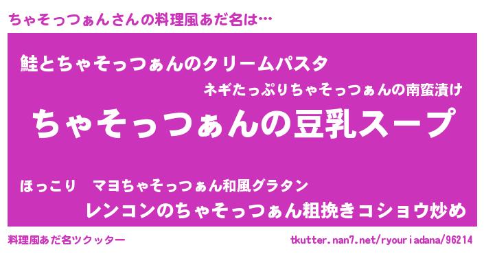 | 女子向けラノベタイトル風あだ名 | 『ちゃそっつぁんは平凡を望む』 |