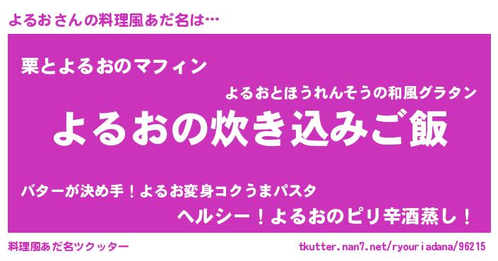 | 意味不明あだ名 | 『自称よるお』『しいたけ科よるお属』 |