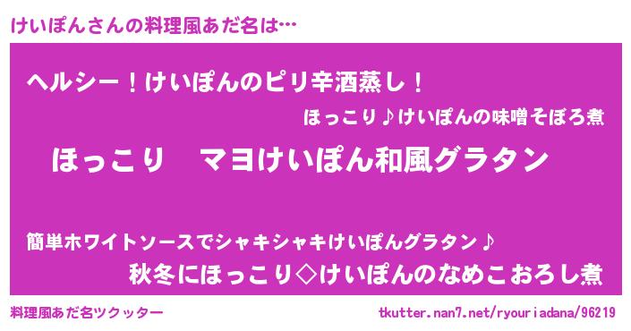 | 女子向けラノベタイトル風あだ名 | 『悪役けいぽんに転生したようですが、知った事ではありません』 |