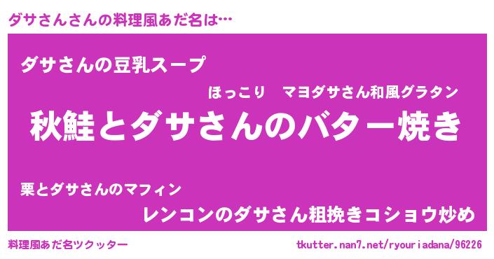 | ヒーロー風カッコイイあだ名 | 『ネオダササン』『黄金騎士ダサ』 |