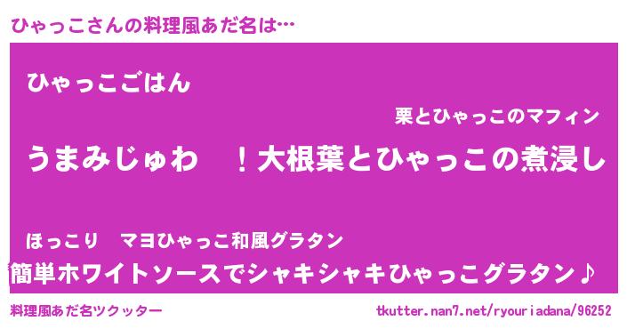 | ヒーロー風カッコイイあだ名 | 『ウルトラひゃっこマン』『黄金騎士ヒャ』 |