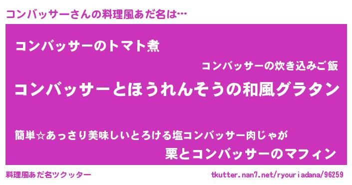 | 男性向けラノベタイトル風あだ名 | 『コンバッサー~年齢イコール彼女いない歴の魔法使い~』 |