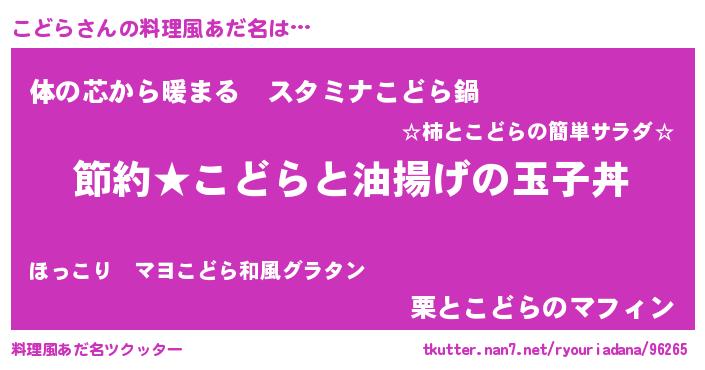 | 男性向けラノベタイトル風あだ名 | 『こどらの憂鬱』『はたらくこどらさま!』 |
