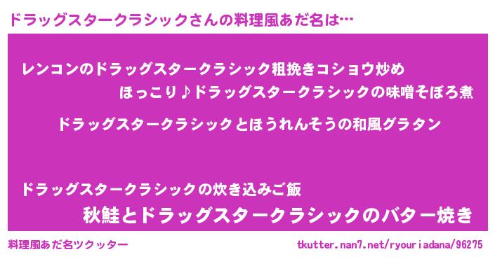| ヘコむあだ名 | 『ドラッグスタークラシック(震え声)』 |