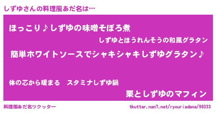 | 意味不明あだ名 | 『とにかく怪しいしずゆ』『自称しずゆ』 |