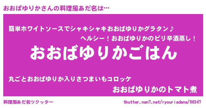 | 胡散臭い通販商品みたいなあだ名 | 『信頼と実績のサプリメント…その名も「おおばゆりか」』 |