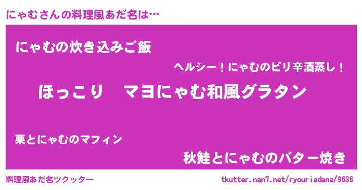 | 男性向けラノベタイトル風あだ名 | 『この素晴らしい世界ににゃむを!』 |