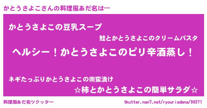 | 意味不明あだ名 | 『自称かとうさよこ』 |