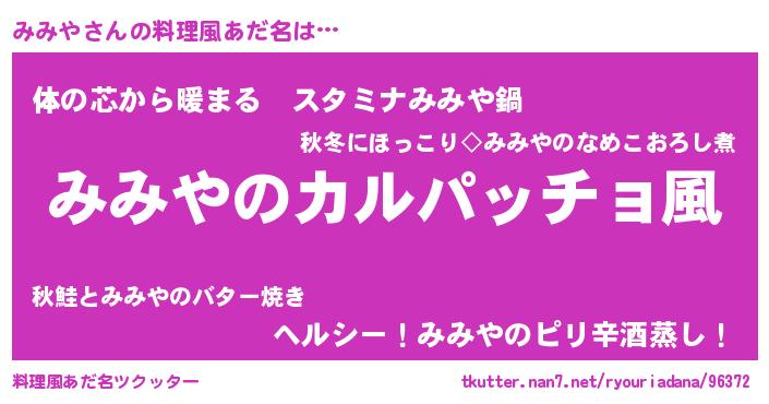 | 意味不明あだ名 | 『住所不定無職みみや(91歳)』『自称みみや』 |