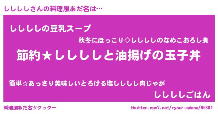 | ヘコむあだ名 | 『ししもー』『ししっ子』『なまこ酢』 |