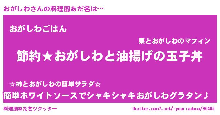 | 男性向けラノベタイトル風あだ名 | 『オガシワアートオンライン』 |