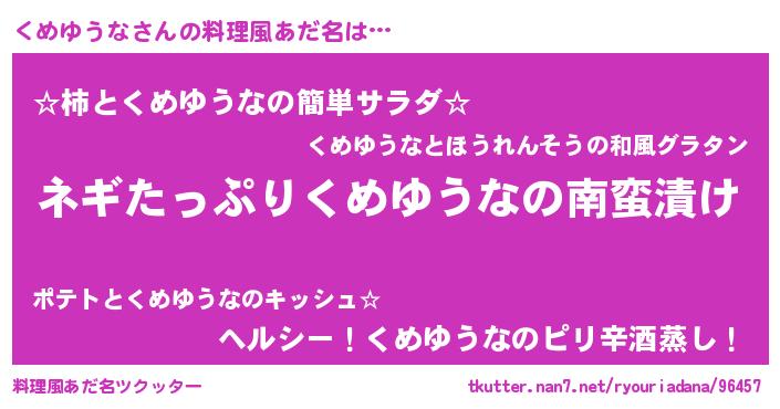 | ヘコむあだ名 | 『くめにゅー』『くめぷりん』 |