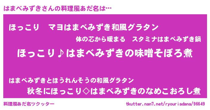| 2回繰り返すあだ名 | 『はまはま』『すんすん』『ははまま』 |