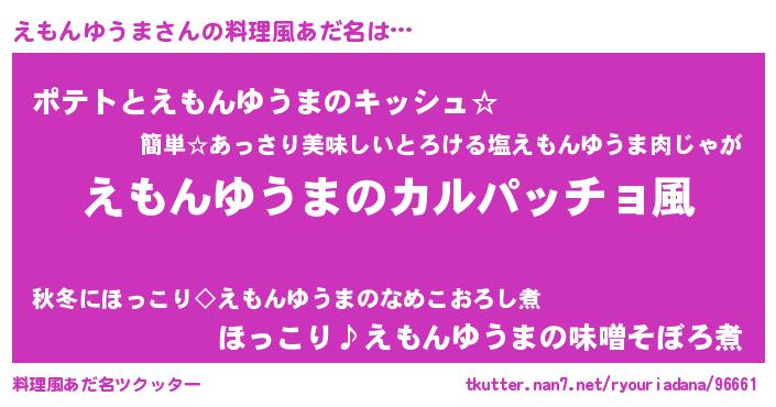 | 意味不明あだ名 | 『住所不定無職えもんゆうま(81歳)』 |