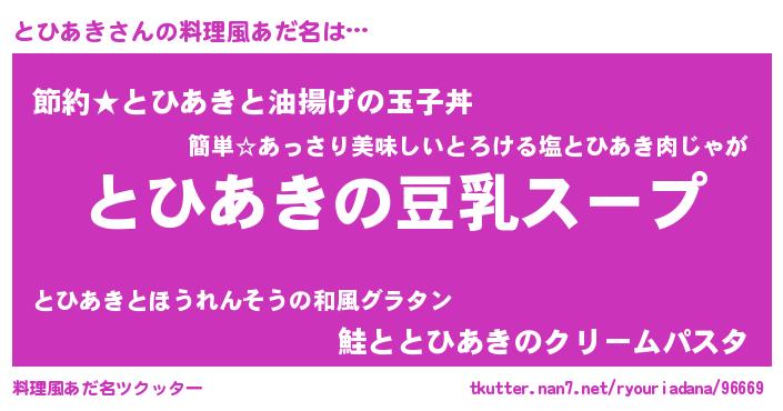 | 女子向けラノベタイトル風あだ名 | 『とひあきは平凡を望む』 |