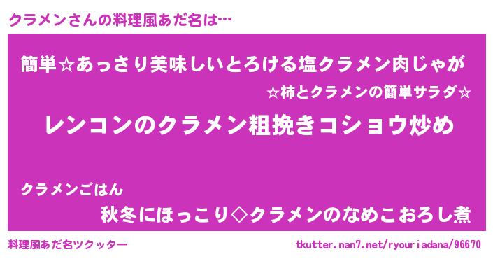 | 胡散臭い通販商品みたいなあだ名 | 『ガンによく効くアガリクス…その名も「クラメン」』 |