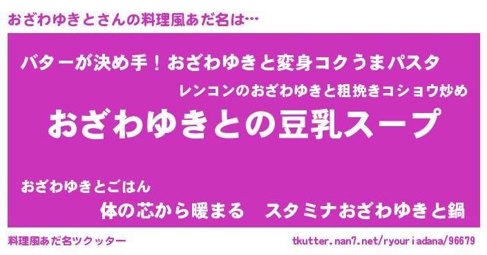 | ヘコむあだ名 | 『おざを』『なまこ酢』『おざもー』 |