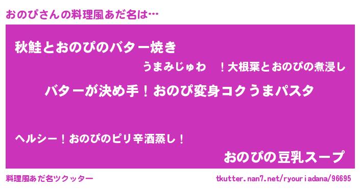 | 女子向けラノベタイトル風あだ名 | 『おのぴ恋絵巻』『おのぴの契約王妃』 |