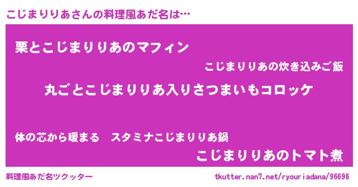 | 意味不明あだ名 | 『住所不定無職こじまりりあ(10歳)』 |