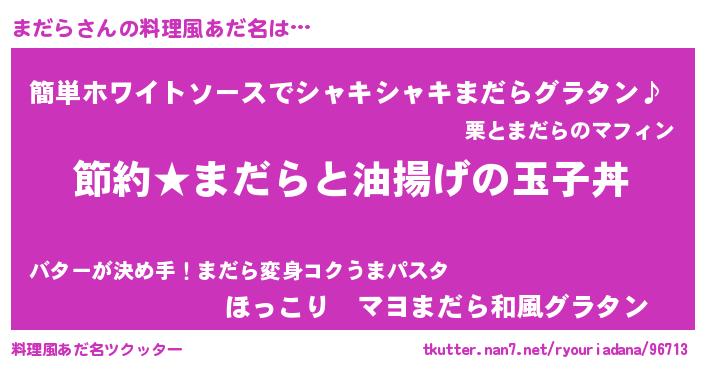 | ピコ太郎風あだ名 | 『マコ六郎』『マダ太郎』『ママ太郎』 |