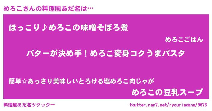 | 女子向けラノベタイトル風あだ名 | 『めろこ恋絵巻』『めろこは平凡を望む』 |