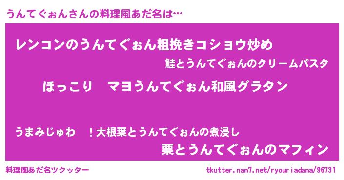 | 意味不明あだ名 | 『住所不定無職うんてぐぉん(9歳)』 |