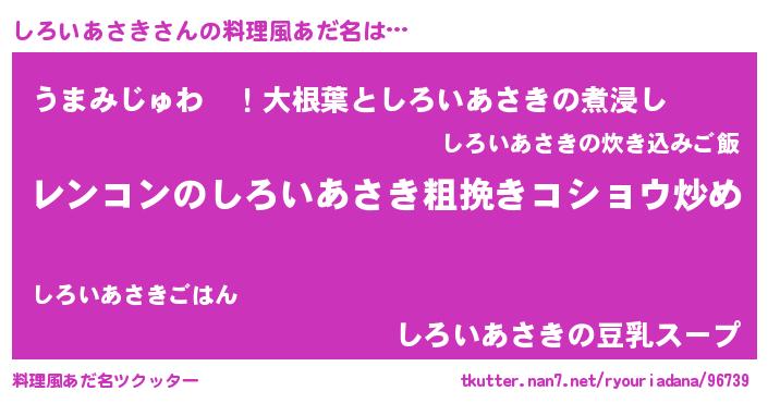 | 意味不明あだ名 | 『自称しろいあさき』 |