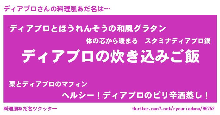 | 男性向けラノベタイトル風あだ名 | 『うちのディアブロが世界を掌握している!』 |