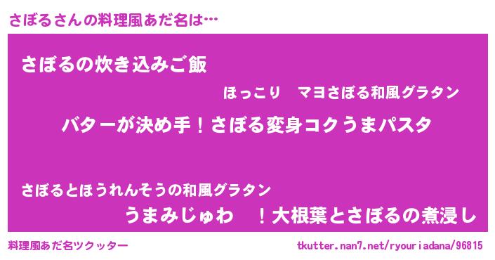 | ピコ太郎風あだ名 | 『ササ太郎』『ピサ六郎』『サボ四郎』 |