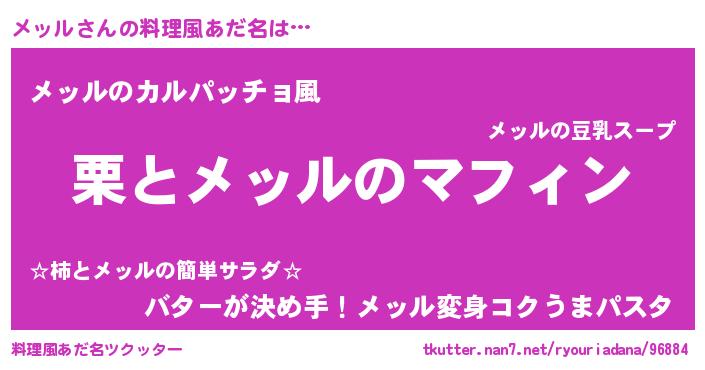 | 女子向けラノベタイトル風あだ名 | 『首の姫と首なしメッル』『メッル恋絵巻』 |