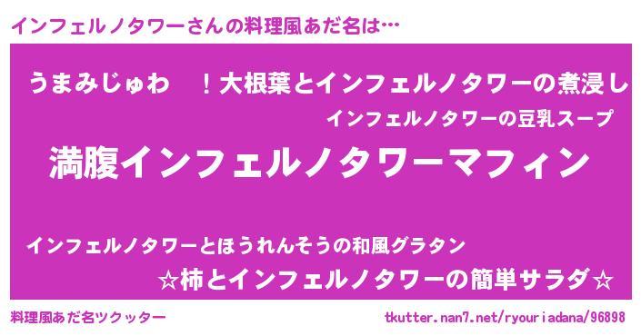 | 女子向けラノベタイトル風あだ名 | 『異世界で失敗しない100のインフェルノタワー』 |