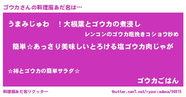 | ヘコむあだ名 | 『ゴウカ(笑)』『酢こんぶ』『ゴウお』 |