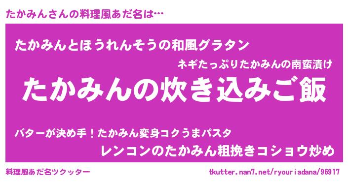 | ヒーロー風カッコイイあだ名 | 『サイバー戦士タカミン』『仮面タカダー』 |