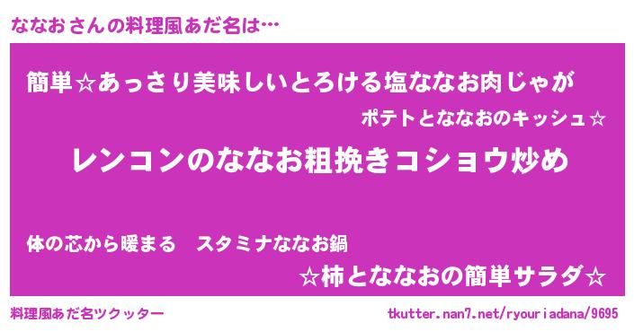 | ヘコむあだ名 | 『ななお(笑)』『ななを』『酢こんぶ』 |