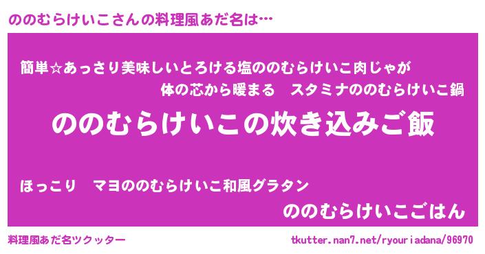| ヒーロー風カッコイイあだ名 | 『ネオノノムラケイコ』『仮面ノノダー』 |