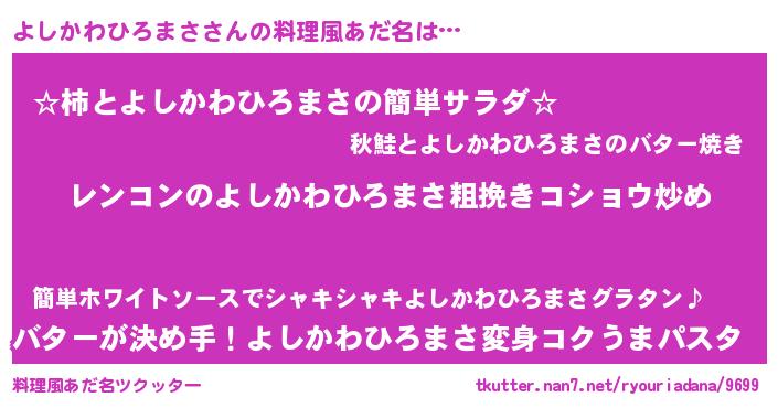 | ヘコむあだ名 | 『よしかわひろまさ(遠い目)』『よしぷりん』 |