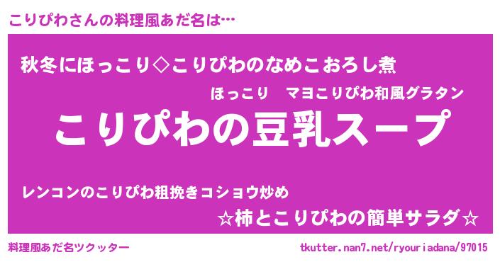 | ヘコむあだ名 | 『こりっ子』『こりぴわ(笑)』 |