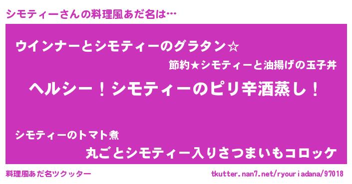 | 意味不明あだ名 | 『自称シモティー』『ペロリンシモティー』 |