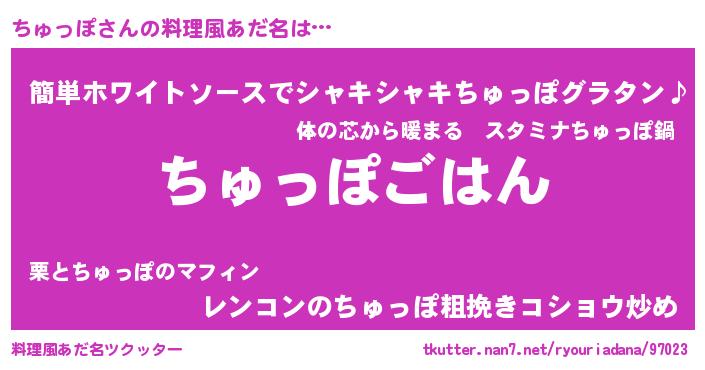 | ヒーロー風カッコイイあだ名 | 『黄金騎士チュ』『究極戦士チュッポ』 |