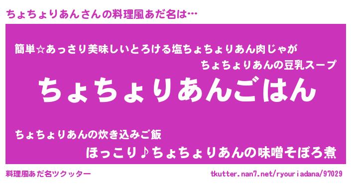 | 男性向けラノベタイトル風あだ名 | 『チョチョリアンスレイヤー』 |