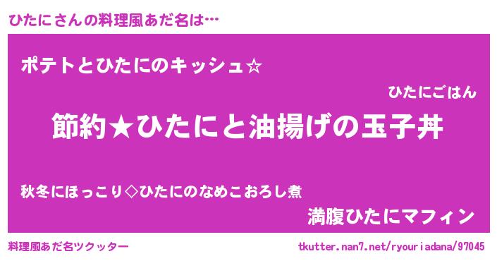 | 男性向けラノベタイトル風あだ名 | 『ひたにの憂鬱』『ヒタニスレイヤー』 |