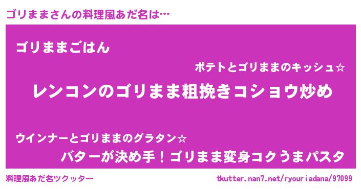| 胡散臭い通販商品みたいなあだ名 | 『ガンによく効く高麗人参…その名も「ゴリまま」』 |