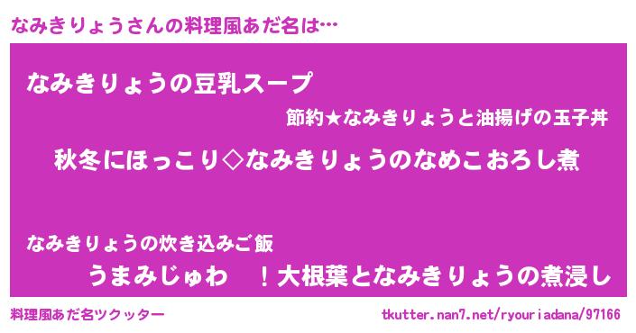 | 意味不明あだ名 | 『とにかく怪しいなみきりょう』 |